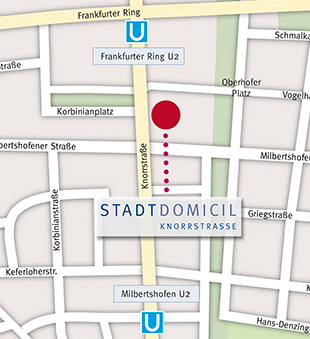 - U-Bahn-Haltestelle Frankfurter Ring und Bushaltestelle am Korbinianplatz liegen im Gehbereich